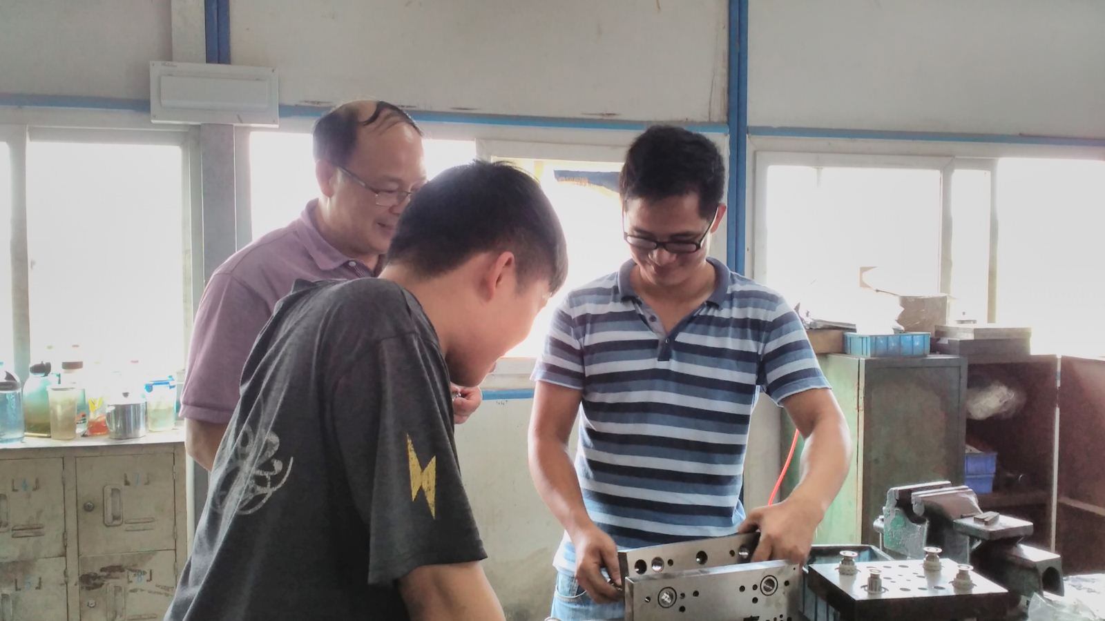 此次企业之行同时听取了企业对模具专业人才培养意见,探讨了有关课程的设置与设计。从毕业生对岗位技能的适应,使我们更加明白专业核心课程的教学改革的必要性和迫切性。詹建新毕业2年,现已是公司模具装配技术最过硬的人,而朱社光则是又能设计又能制造模具的企业技术能手。看到我们的学生能取得这样的成绩,高兴之余,更感到作为教师的责任。