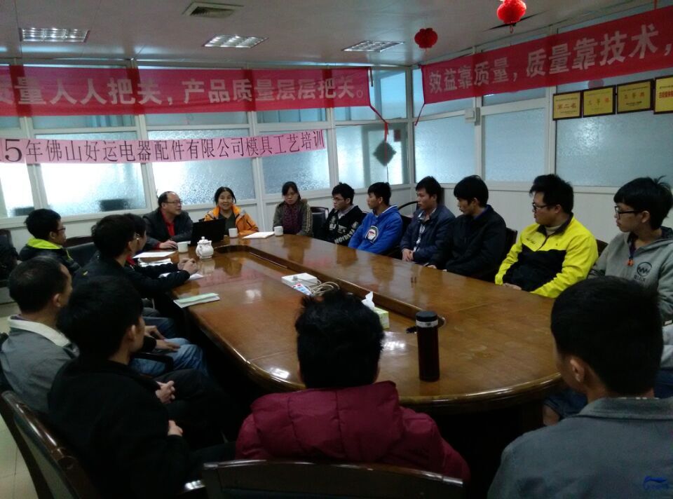 我院李昌权院长率骨干教师邓汝荣、王香文、黄雪梅赴佛山好运电器配件有限公司,为该公司开展模具工艺技术培训,培训对象主要为该公司一线生产人员,包括我系毕业生与实习生,取得较好效果。