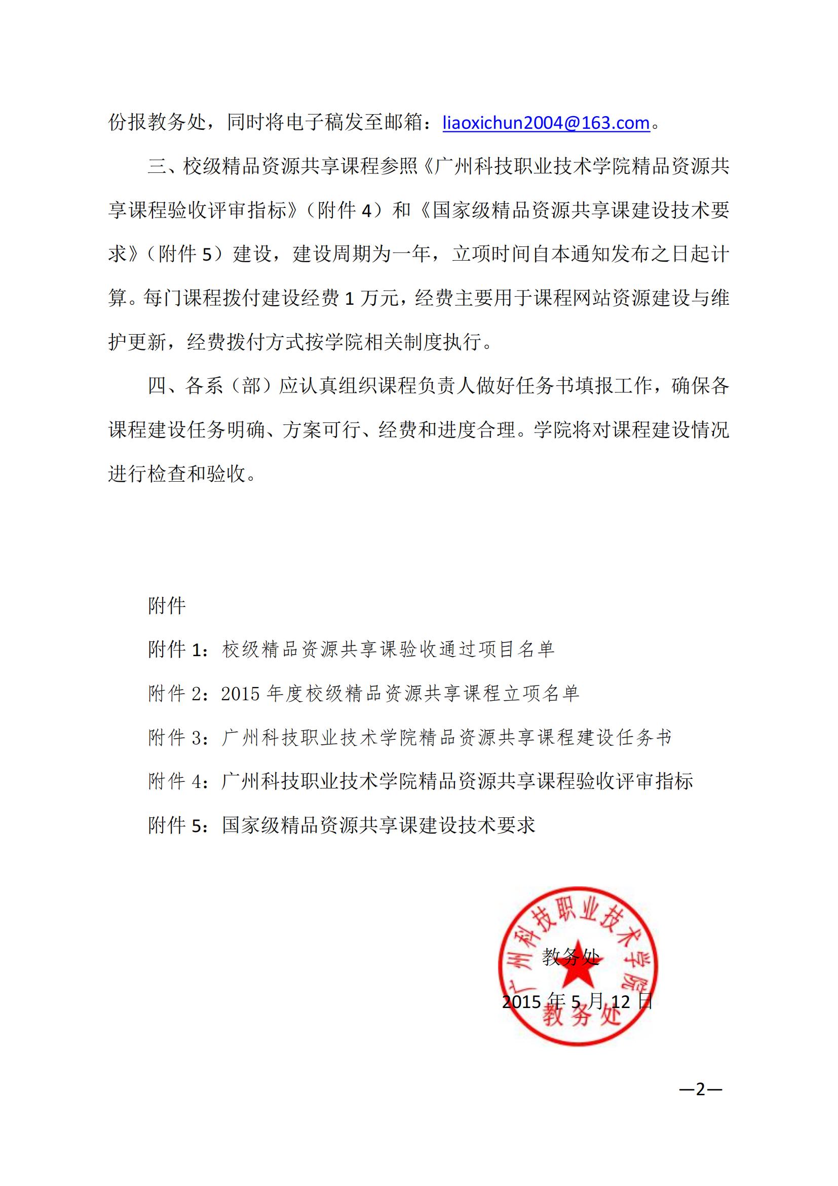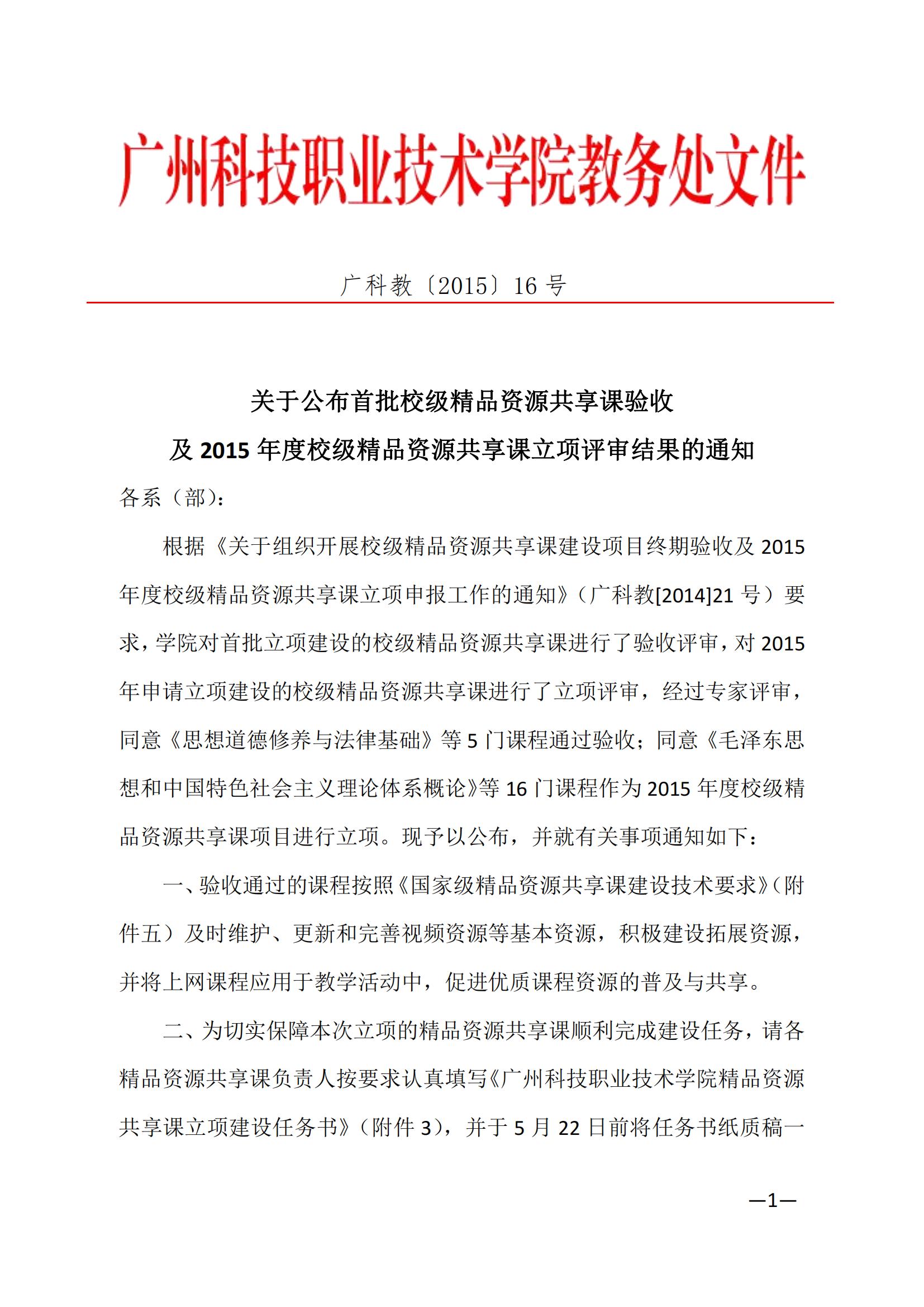 关于公布首批校级精品资源共享课验收及2015年度校级精品资源共享课立项评审结果的通知